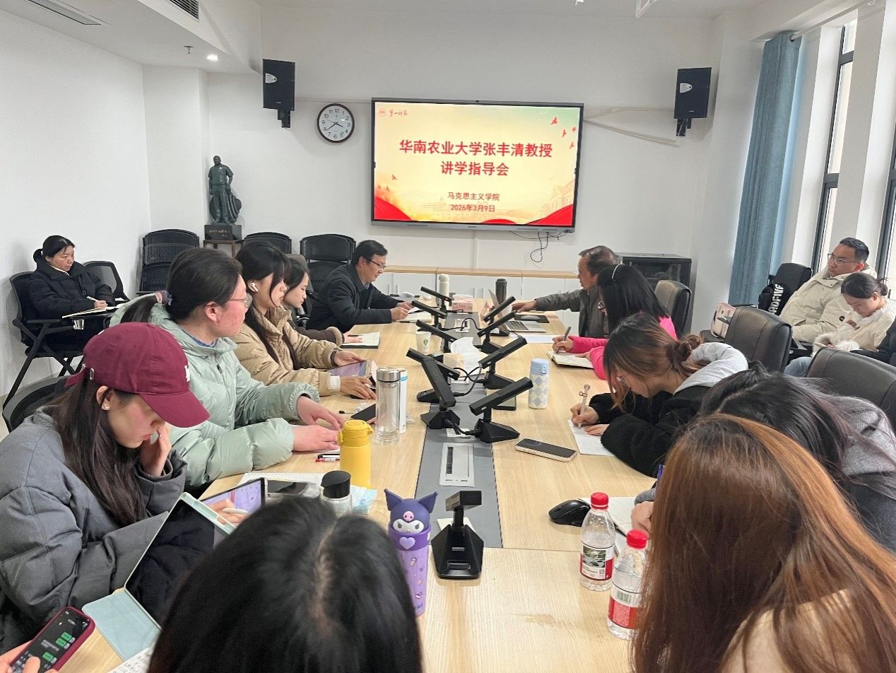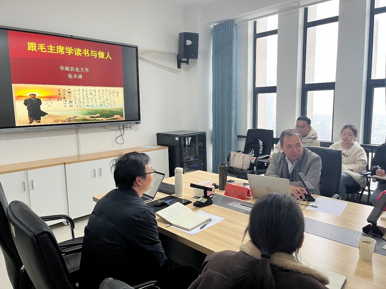 3月9日下午,华南农业大学fun88官网体育张丰清教授应邀来院讲学,讲学主题为“跟毛主席学读书与做人”。讲座由公司经理陈明教授主持,地点在百熙楼1010会议室,公司部分教师及全体研究生参会学习。