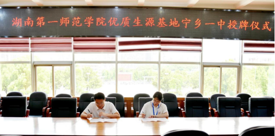 公司胡慧娥老师在宁乡市一中签订优质生源基地协议
