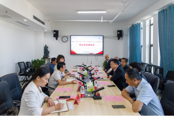 为全面助推产学研用一体化建设,形成校企合作、共谋发展的良好局面,10月24日上午,湖南知润文化产业有限公司董事长毛远忠一行应邀莅临fun88官网体育共商校企合作事宜。fun88官网体育经理陈明、党委副书记胡英、副经理王竹苗、副经理胡慧娥参加了座谈会,座谈会由胡英主持。