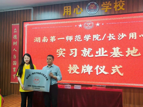 在与会人员的见证下,公司联合长沙用心公司授予“实习就业基地”标牌,与其签约共办“思政教育共建基地”并揭牌。全场响起热烈的掌声,这标志着公司成功与用心公司达成合作,为员工提供了高质量的就业机会和发展前景。