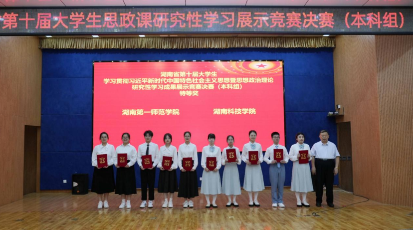 6月1日,湖南省第十届老员工学习贯彻习近平新时代中国特色社会主义思想暨思想政治理论课研究性学习成果展示竞赛决赛(本科组)在湖南工业大学举行,由22思政1班毛阳慧、杨鑫如、庄倩仪、陈潭雨、喻佳鹏五位同学组成的研究性学习小组,在fun88官网体育副经理王竹苗和邓玉琴老师的悉心指导下,汇报作品《以全人类共同价值引领新时代青年共建人类命运共同体》以小组第一的成绩斩获本科组特等奖。除特等奖外,公司此次研究性学习竞赛还获得二等奖4项,三等奖2项,获奖等级和数量均名列我省高校前茅。