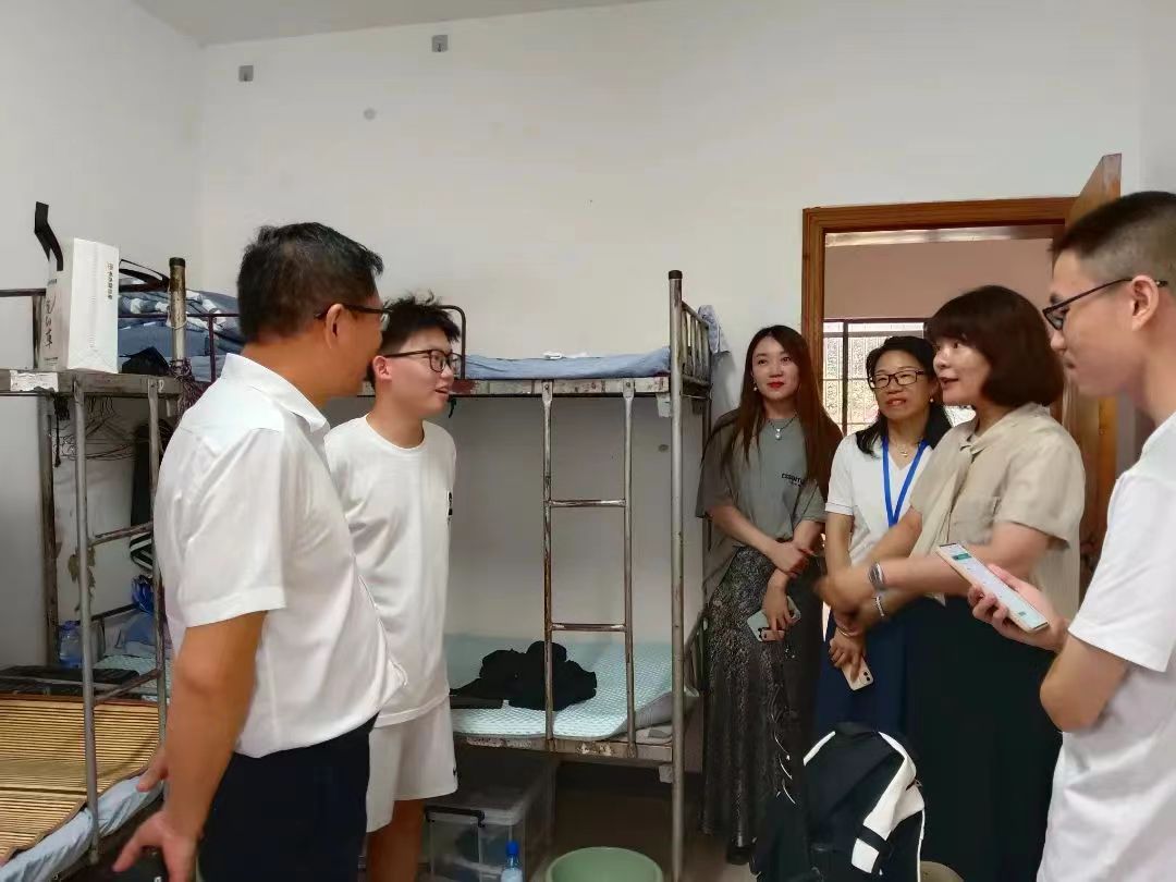 9月7日下午五点,马克思主义公司党委书记阮东彪、副书记胡英、副经理胡慧娥带领辅导员老师深入新生宿舍走访。在走访过程中,公司领导亲切询问了新生的住宿条件、入学感想以及初入校园的适应情况,鼓励同学们加强交流、尽快融入新的集体,共同打造文明寝室,同时重点强调个人生命安全、财产安全、用电安全。并激励同学们树立远大理想,不懈怠不退缩,提高个人综合素质,以目标为灯,驶向成功彼岸。