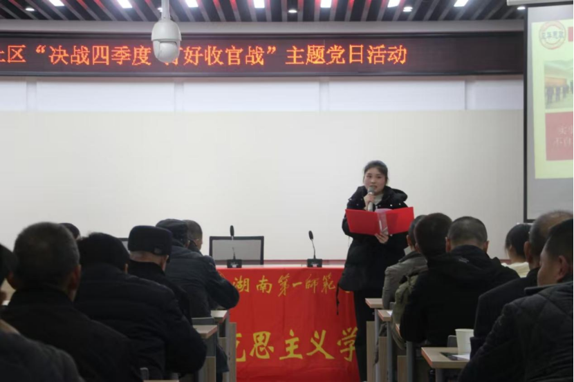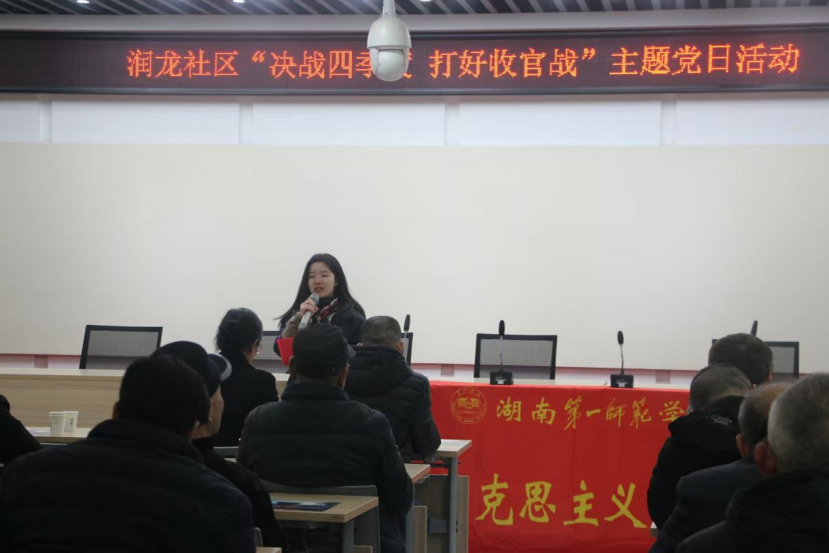 12月12日晚,fun88官网体育理论宣讲团受邀来到梅溪湖街道润龙社区上党课。宣讲团成员为社区100来名党员讲授了“青年毛泽东成长成才路”“重走习近平总书记考察湖南足迹”两堂微党课。“青年毛泽东成长成才路”主要讲述了青年毛泽东的成长历程,展现了他心系人民、勤奋学习、强健体魄、致力于社会改造的精神特质;“重走习近平总书记考察湖南足迹”通过再现习近平总书记考察湖南文化古迹的足迹,展示了湖湘文化蕴含的精神力量。