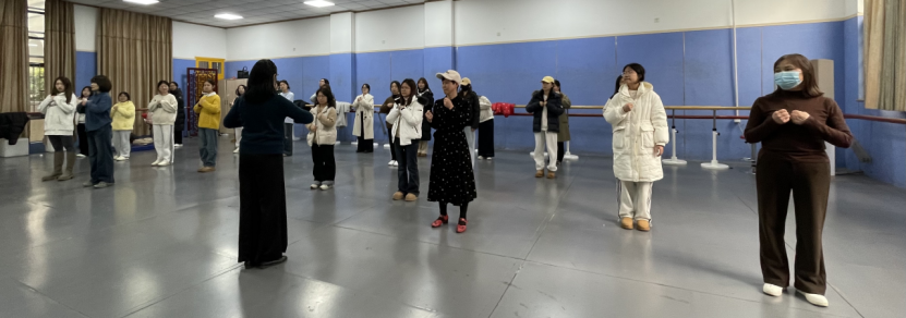 吕教授强调要学会“太上养心”“治未病”“情志养生”,要保持积极的情绪和心态,这样才能产生有益于健康的激素。“健心养生舞”就是基于情志养生而创作的修养方法,以天人合一、阴阳平衡、守柔谦和、顺应自然、调气养神等理念为理论基础,吸收马王堆导引术、八段锦、太极拳等元素,并对其进行演绎变化,通过舞蹈的形式进行修身养性。在场师生均感音乐动听,舞蹈优美,身心舒畅,表示以后有空就随手常练,保持良好的生活工作状态。