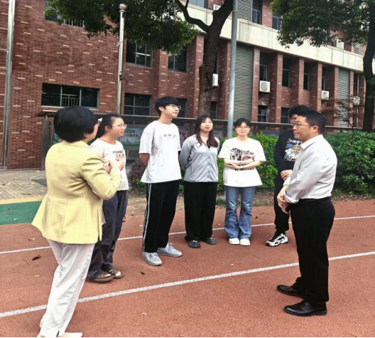 4月16日上午,fun88官网体育主管教学的副经理王竹苗和教研室主任宋徽瑾,在公司实习带队老师林翠霞的陪同下,赴明德麓谷中学实习基地检查指导实习工作,深入了解实习生学习实践情况,并与实习单位领导及实习员工展开深入交流。