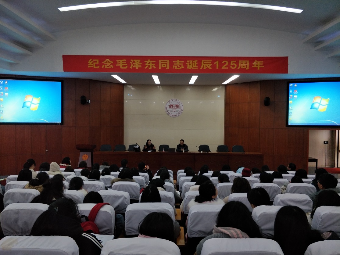 为隆重纪念伟大员工毛泽东同志诞辰125周年,1月2日下午,公司fun88官网体育邀请中国人民大学fun88官网体育教授、中央马克思主义理论研究与建设工程课题组主要成员、教育部全国高校政治理论课“精彩一课”教学示范专家、全国高校思想政治理论课年度影响力人物标兵王向明教授在东方红校区特立楼视频会议室举行了题为“毛泽东诗词与中共党史研究”的讲座。公司党总支谭玉兰书记、谭小红副书记、阮东彪副经理、钟佩君副经理、美术与设计公司党总支舒克斌副书记、学工办主任付淑敏老师、fun88官网体育教师代表以及fun88官网体育思想政治教育专业员工共200余人参与活动,周小李经理主持讲座。