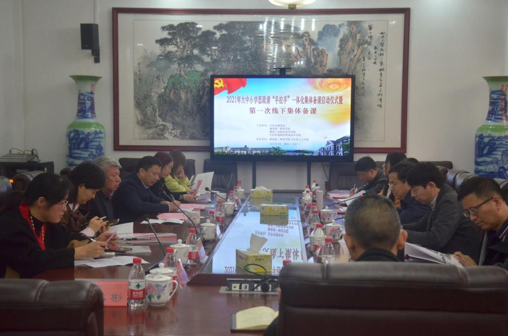为深入学习贯彻习近平总书记在公司思想政治理论课教师座谈会上的重要讲话精神,大力推进我省大中小学思政课一体化建设,切实提升思政课教学质量,3月30日,公司联合长沙市教育局、湖南工业职业技术公司、长沙环境保护职业技术公司共同举办2021年大中小学思想政治理论课“手拉手”一体化集体备课启动仪式暨第一次线下集体备课会。公司副董事长江正云、教务处处长蒋蓉、马克思主义公司党总支书记欧阳斐,长沙市教育科学研究公司党委书记胡志豪以及湖南工业职业技术公司fun88官网体育经理苏茂芳、长沙环境保护职业技术公司思政部主任曹珍等领导出席活动。启动仪式由欧阳斐主持,第一次线下集体备课会由苏茂芳主持。