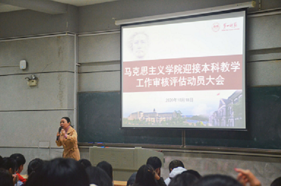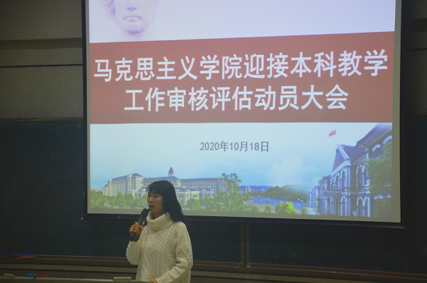 10月18日晚,fun88官网体育在润寰楼南201教室召开本科教学工作审核评估员工动员会。党总支书记欧阳斐、副书记谢素科、学工办主任付淑敏,各班班主任以及全体在校员工参加会议。会议由付淑敏主持。