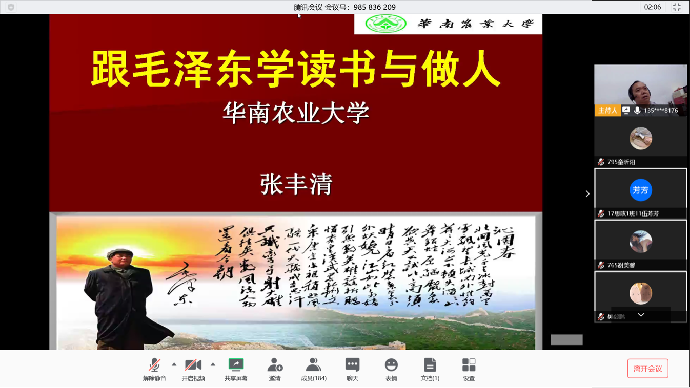 相信通过本次讲座,同学们充分体会到毛泽东思想的光辉和高度,深刻感受到学习毛泽东思想道阻且长,也对“学读书”和“学做人”有进一步的反思和体会。