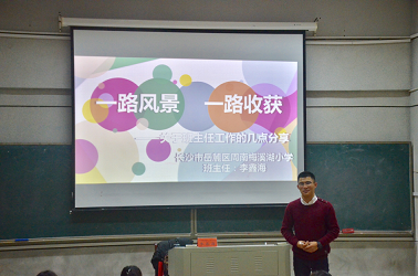 本报讯(记者 谭岳梅 屈佳雨)12月8日下午,长沙市岳麓区周南梅溪湖小学班主任李鑫海老师于润寰南201教室作题为“一路风景,一路收获”的关于班主任工作分享的专题讲座,覃青姣担任本次讲座主持,公司钟佩君副经理、学工办主任付淑敏老师带领马院大二全体员工出席讲座