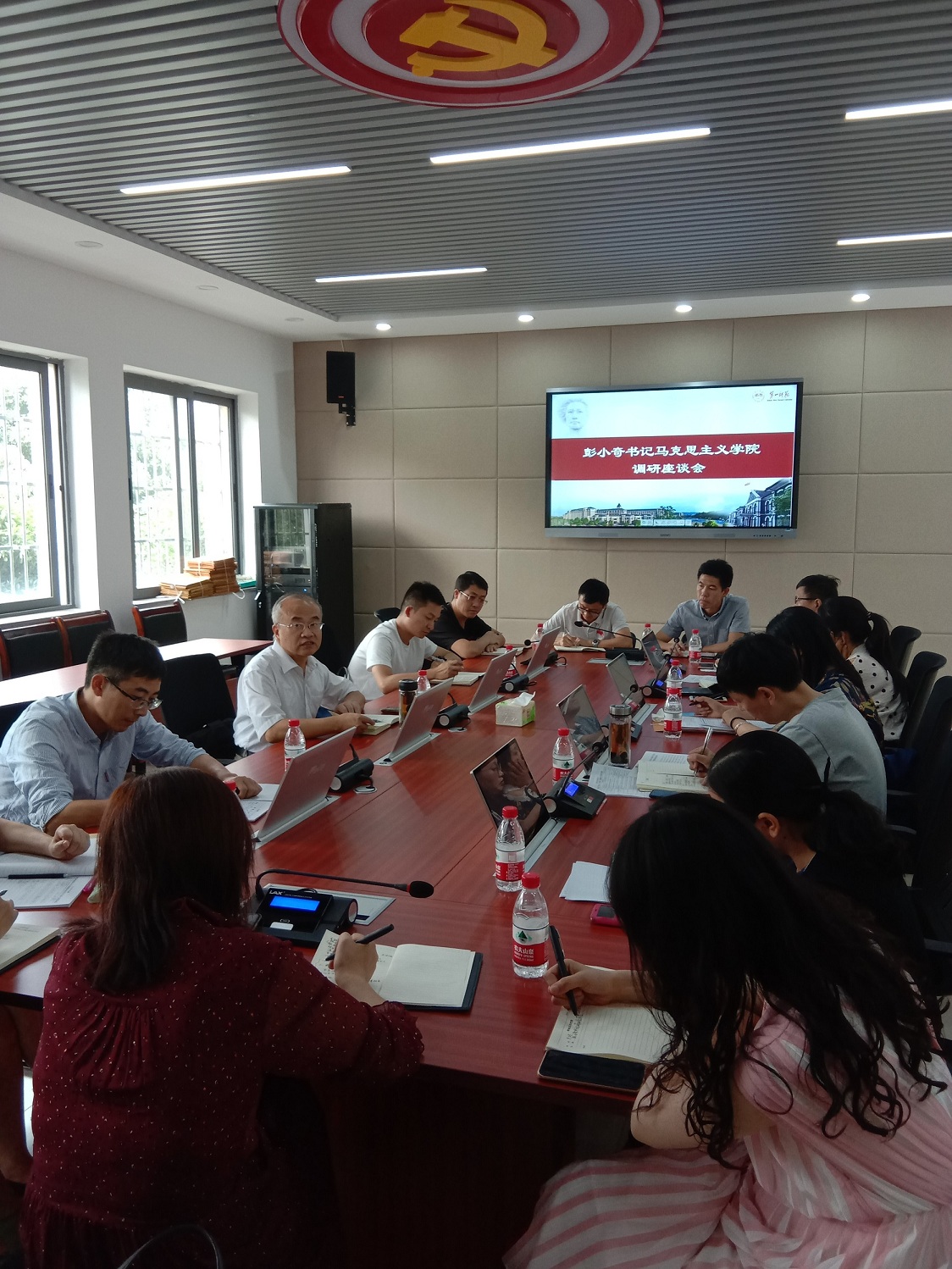 2019年9月25日下午,公司党委书记彭小奇在fun88官网体育开展“不忘初心、牢记使命”主题调研。马克思主义公司党政领导班子成员、党支部书记、教研室主任和部分教师代表参加调研座谈会。