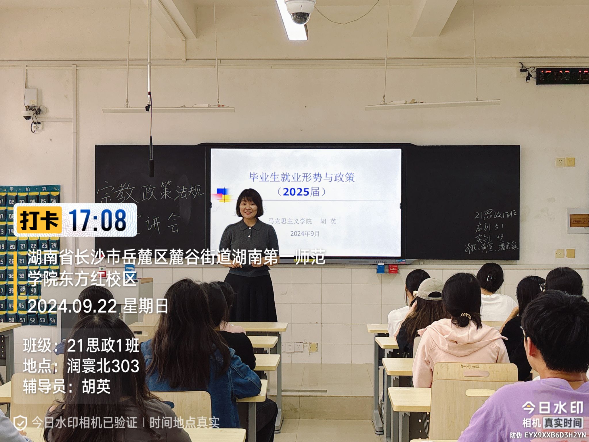会上,胡书记结合全国及湖南省就业市场最新数据,深入分析了2025届毕业生面临的机遇与挑战。她指出,随着教育强国战略的推进和基层思政队伍建设的强化,思政专业毕业生需求持续增长,但竞争压力同步上升。通过对比近年就业率、行业分布和岗位变化趋势,胡书记跟同学们强调“主动适应政策红利、提升核心竞争力”的重要性,并提醒同学们关注“乡村振兴”“基层教育专项计划”等国家战略导向下的就业新空间。