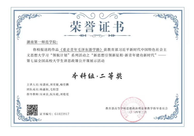《重走青年毛泽东游学路》由公司教师吴承富、阮东彪、刘艳霓指导,员工易潇雨、刘奕婕、喻佳鹏、杨鑫如、毛阳慧共同参与完成,以行走的思政课形式,将公司资源与地方本土资源融入思政课堂,追寻青年毛泽东的游学经历,挖掘其中蕴含的精神价值,激励广大青年继承和发扬青年毛泽东游学精神,投身新时代的民族复兴伟业中。