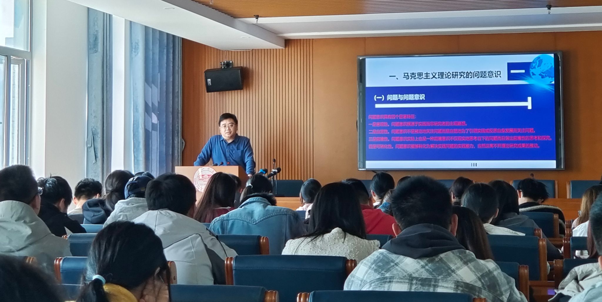 10月24日下午,上海交通大学fun88官网体育教授、博士生导师史宏波教授应邀来公司讲学,主题是“马克思主义理论研究的问题意识和系统思维”。本次讲座聚焦马克思主义理论专业论文的写作核心痛点,结合史教授自身深耕思想政治教育研究的丰富经验,为全院师生解析“如何以问题意识破解论文套路化”“如何以精准用词夯实选题根基”,兼具理论深度与实操指导。讲座由公司副经理胡慧娥主持,公司艾楚君教授、刘慧芳博士、肖佳博士等教研骨干以及研究生50余人参会。
