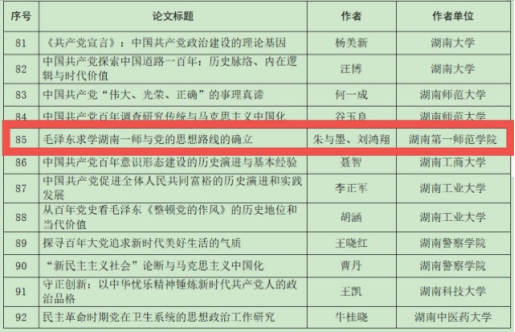朱与墨老师论文入选湖南省庆祝中国共产党成立100周年理论研讨会100篇理论文章