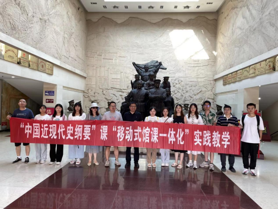 当天下午,漫长的车途过后,师生们到达郴州市苏仙区湘南起义纪念馆。湘南起义是朱德、陈毅与中共湘南特委共同组织发动的一次伟大的武装起义。习近平总书记在纪念朱德同志诞辰130周年座谈会上曾指出其重要意义:“他(朱德)率领南昌起义余部和湘南起义农军上井冈山,同毛泽东同志率领的湘赣边界秋收起义部队胜利会师,点燃土地革命战争的燎原之火。”在纪念馆,师生跟随讲解员的步伐,经过了“浴血重生,朱德率部奔湘南”“波澜壮阔,创建苏维埃政权”“战略转移,湘南义军赴井冈”等多个展厅。