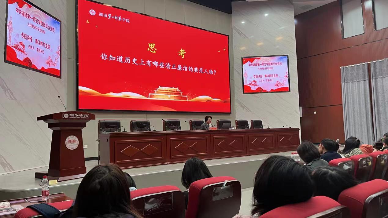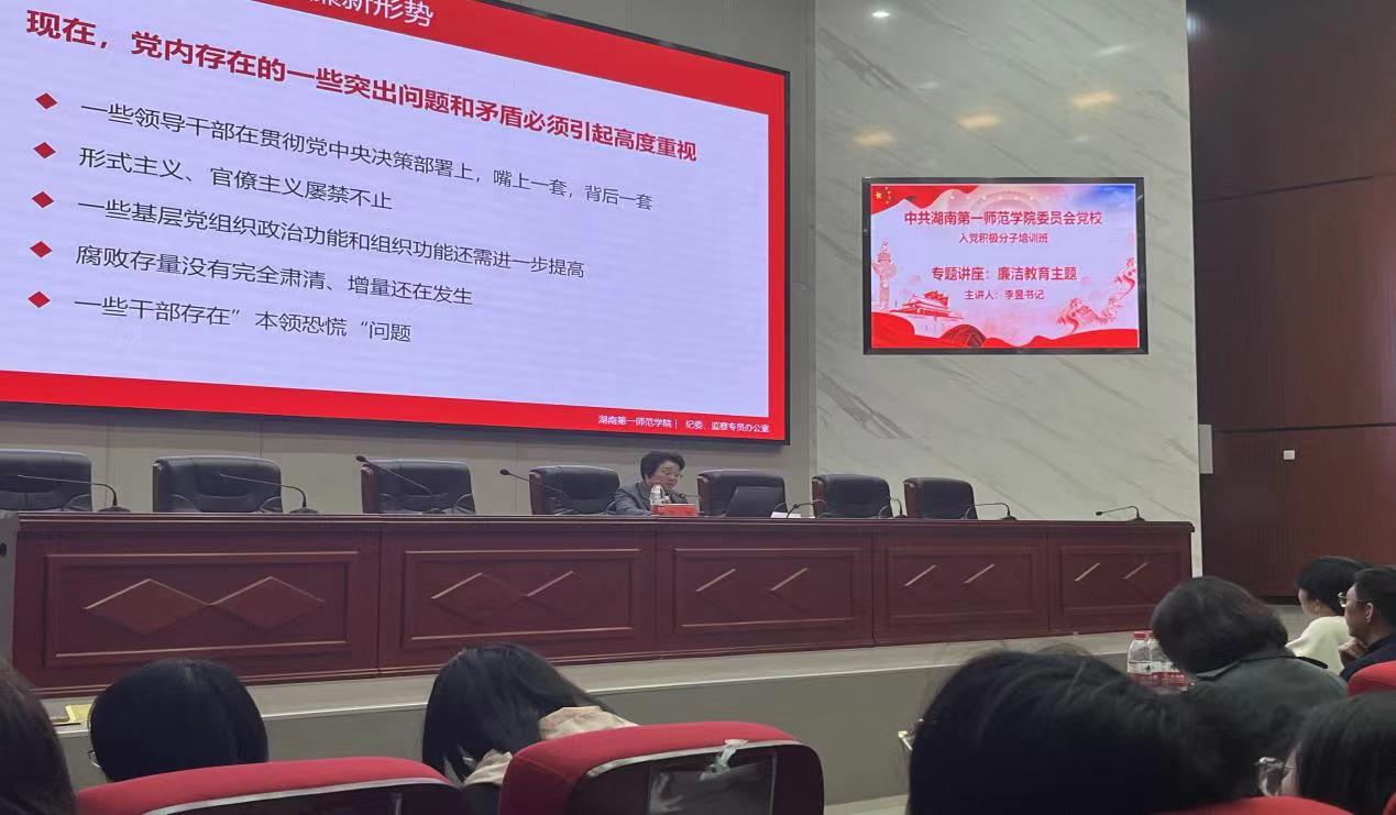 为筑牢入党积极分子思想防线,增强廉洁自律意识,树立底线思维和红线意识,严格把好党员发展“入口关”,11月28日晚19时,公司党委委员、纪委书记李昱于百熙楼228报告厅为文学与传播公司、外国语公司和fun88官网体育共200余名入党积极分子上廉洁教育专题党课,党课主题为“拒腐尚廉,风正行远”。本次专题培训由马克思主义公司党委副书记胡英主持,文学与传播公司党委副书记李豪杰、员工党支部书记唐科、副书记陈滢琪在场聆听了专题党课。