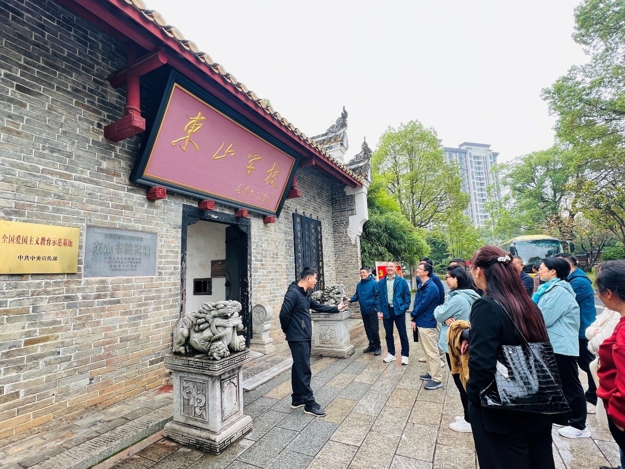 上午,公司教职工一行受到东山书院舒海江所长的接见,并在东山公司武文渡老师的激情讲解下,完整详细地了解了少年毛泽东在此求学期间的历程和经典历史故事。入学的《言志》作文考试、咏蛙诗的诞生过程,无不反映出他立志报国的远大志向。随后,在毛主席的教室内,公司党委书记阮东彪给大家上了青年毛泽东的专题党课,强调要学习伟人的积极进取与求索精神。最后,东山公司陈佑军董事长与公司教职工就大中小思政一体化建设作了深入交流。