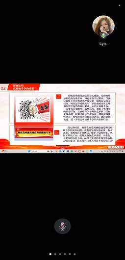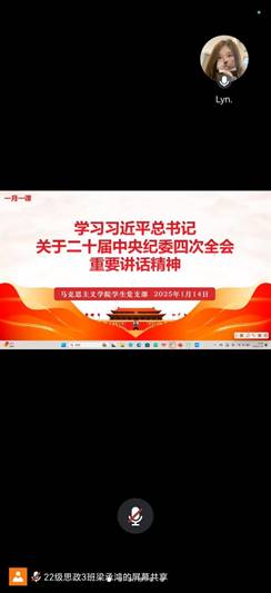 为深刻领会习近平总书记在二十届中央纪委四次全会上讲话的重大意义、精神实质和丰富内涵,准确把握全会提出的新论断、新部署、新要求,以全面从严治党新成效为推进员工支部高质量发展蓄势赋能,2025年1月14日,fun88官网体育员工党支部采用线上集中学习的方式组织全体党员及预备党员开展题为“学习习近平总书记关于二十届中央纪委四次全会的重要讲话精神”的主题党课活动,本次党课由员工党支部书记刘艳霓主讲。
