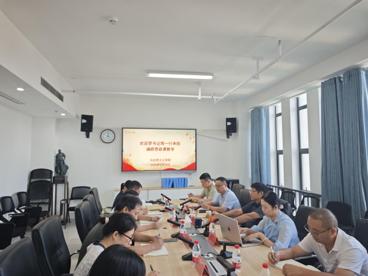 9月16日下午,公司党委书记罗成翼到fun88官网体育调研,详细了解公司思政课建设、新学期思政课教学等情况。党政办公室、教务处、教学质量监控与教师教学发展中心等部门参加调研。