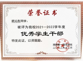 胡沁彤,中共党员,21思政1班员工。曾任校青总会督查部副部长兼志愿服务时长管理委员会主任。在校期间获得国家励志奖学金、校级一等奖学金、优秀共青团干部、优秀员工干部、优秀团员等荣誉十余项。入选公司与福建师范大学协同提质联合培养师范生项目,2023-2024年赴福建师范大学学习交流。现拟录取湖南师范大学学科教学(思政)研究生。