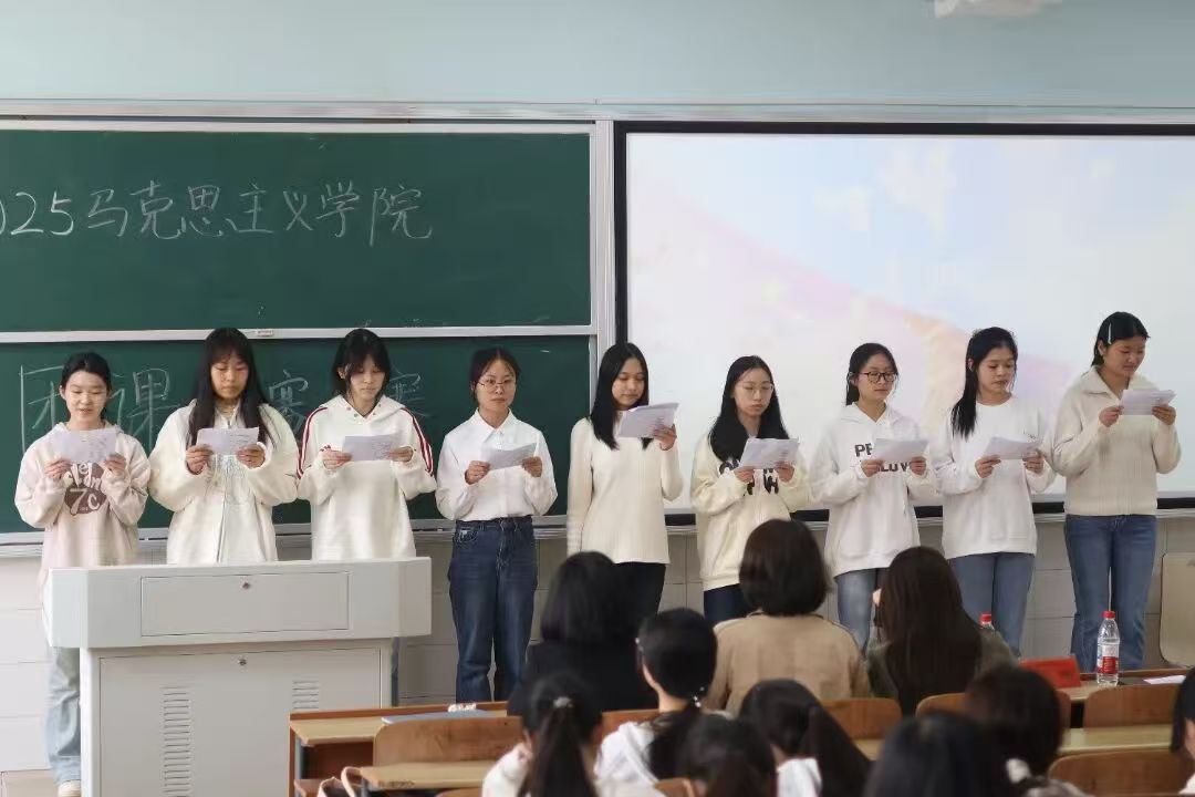 从回望历史到展望未来,各参赛队伍的展示形成鲜明的精神传承脉络。24级思政2班的朗诵《十五五:以奋斗之笔绘就现代化新篇》,将抗战精神、建设精神与新时代奋斗精神相贯通,用铿锵语调抒发青年一代接续奋斗的豪情;25级思政3班围绕“九三阅兵”与抗战精神传承,通过宣讲和朗诵,表达青春担当的使命认知;25级思政4班的诗歌朗诵《时空对话》以“跨越时空与先辈对话”的视角,在古今对话中传递初心传承的信念,现场多次响起热烈掌声。