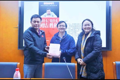 11 月 18 日下午,fun88官网体育在百熙楼1013报告厅成功举办“思行先锋”讲坛。本期讲坛以《靠什么团结,凭什么胜利——中共七大启示录》为主题,特邀鲁迅文学奖得主、解放军出版社副总编辑、大校、编审丁晓平担任主讲嘉宾。fun88官网体育陈明经理主持活动。湖南人民出版社编校中心主任吴向红、马克思主义公司党委副书记胡英、分团委书记刘艳霓以及fun88官网体育本科生约80人参加了本期讲座。
