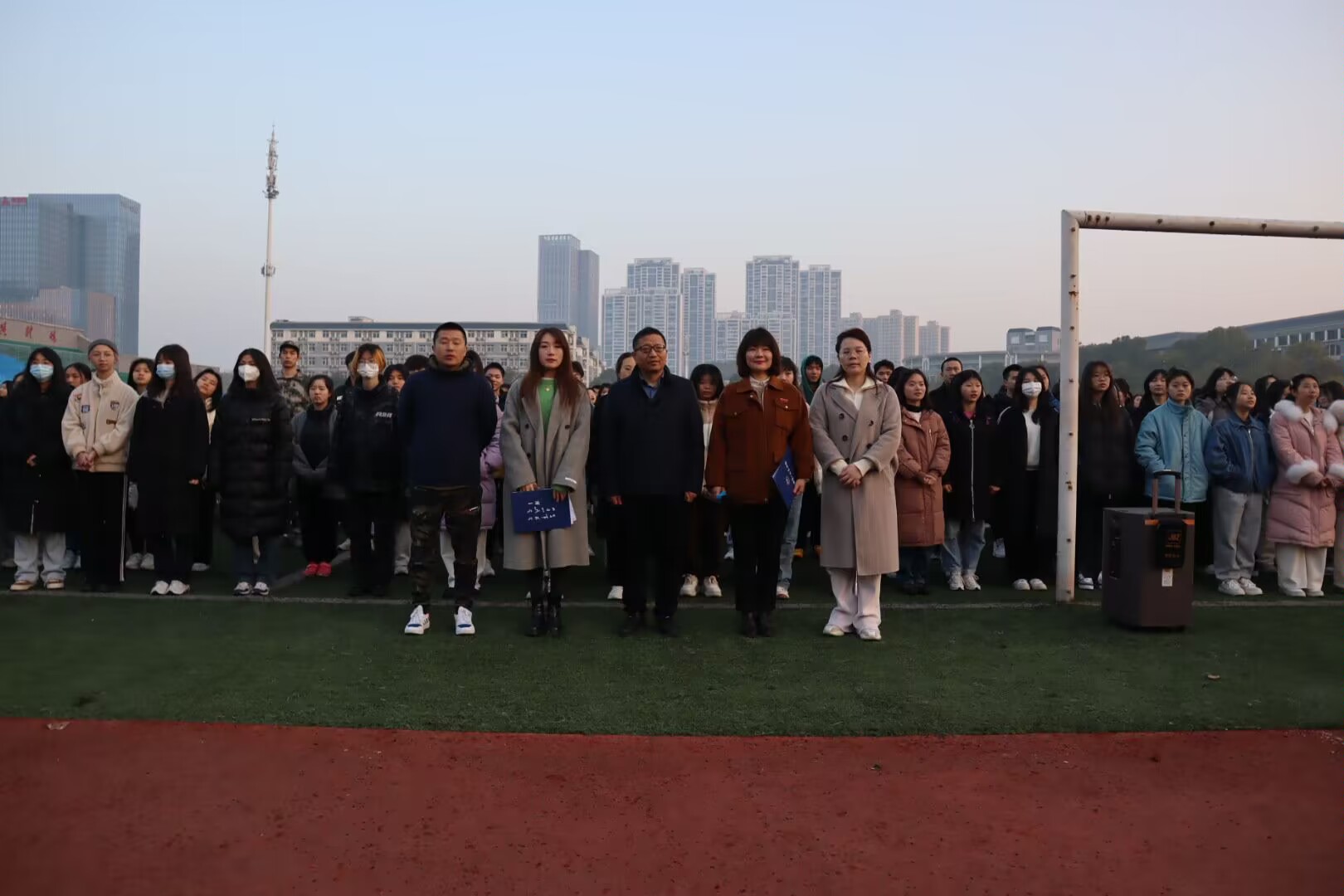 2023年2月27日早晨七点,fun88官网体育在fun88官网体育东方红校区田径场举行了2022-2023学年第三周升旗仪式。参加此次升旗仪式的有马克思主义公司党委书记阮东彪、党委副书记胡英、学工办副主任刘艳霓、辅导员代表匡艳以及fun88官网体育全体员工。仪式由胡英副书记主持。