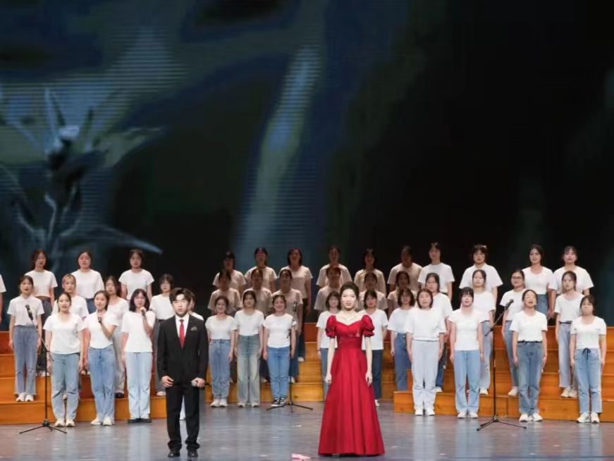 第三章节中,街舞社舞者以舞池为画布,以舞步为画笔,共同绘制出一幅青春的靓丽画卷,展现出满满的元气与活力;歌曲《改革春风吹麦浪》,以悦耳的歌声展现色彩斑斓的青春故事、绚丽多彩的青春日子;歌曲《如愿》,用悠扬的歌声歌颂父辈们如明月清风般的艰苦付出,深切表达了对于父辈们开创盛世的感恩之情。最后,即将进入教师岗位的毕业生代表们上台宣读了《教师就职宣言》,作为人民教师,她们将不负使命,悉心育人,坚定不移为祖国培养人才。