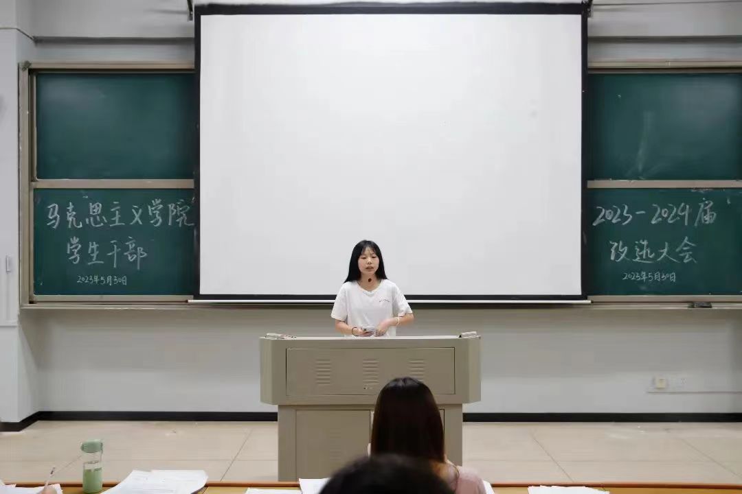 为了进一步加强fun88官网体育的员工干部队伍建设,努力开创公司员工管理工作新局面。5月30日晚,2023-2024届马院员工干部换届选举大会于怀中南209报告厅举行。2022-2023届各部门员工干部、大一至大三各班的团支书和班长,以及各位竞选者参加了本次会议,学工办副主任刘艳霓莅临现场指导改选工作开展。