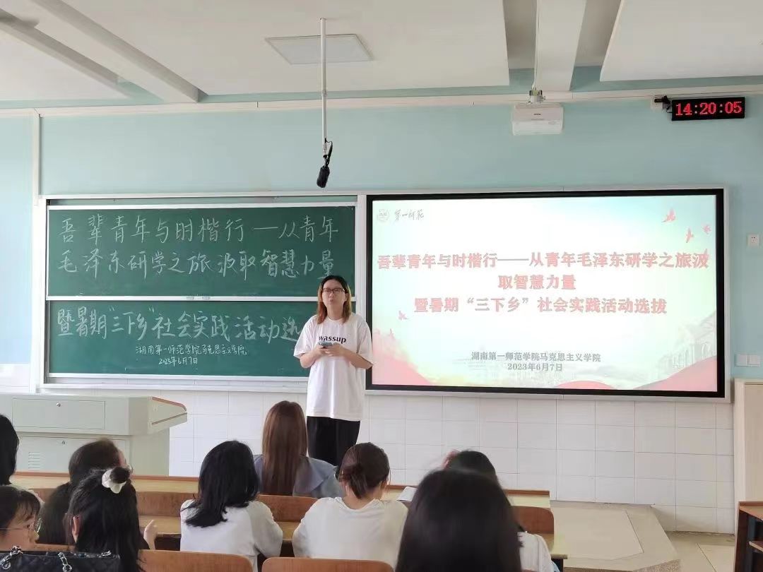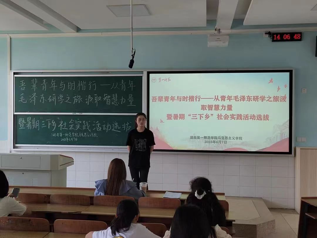 2023年6月7日fun88官网体育于怀中南302开展了“吾辈青年与时偕行——从青年毛泽东研学之旅汲取智慧力量”老员工暑期“三下乡”队员选拔面试工作。此次选拔面试由fun88官网体育学工办副主任刘艳霓担任评委,由21级856思政班杨荣同学担任主持。