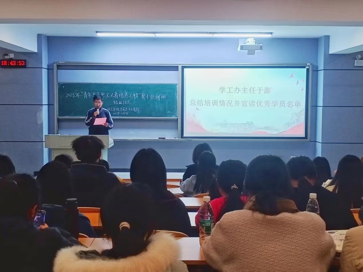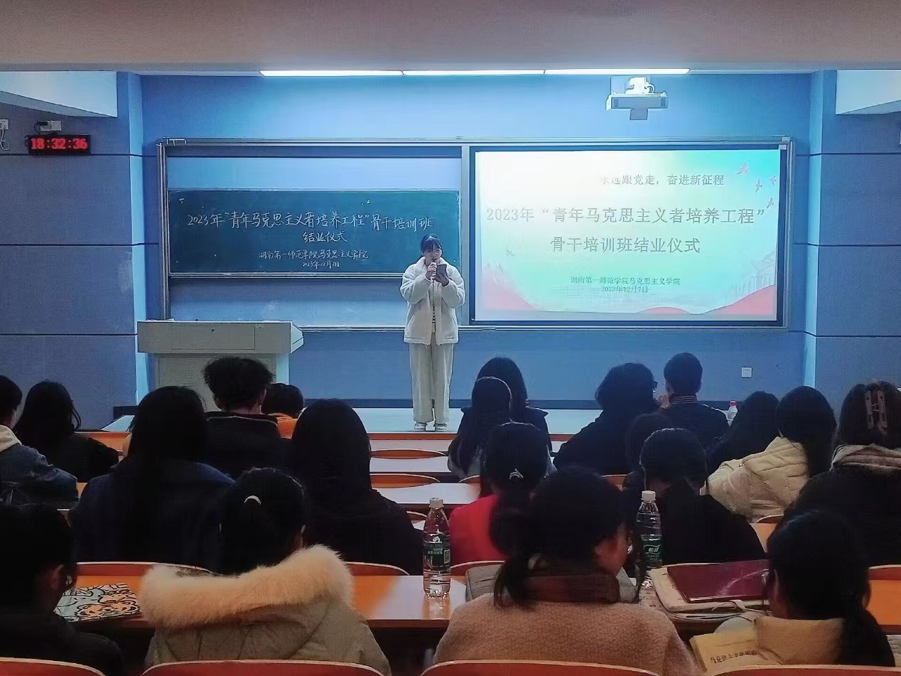 12月7日晚,fun88官网体育在润寰南101教室举行2023年“青年马克思主义者培养工程”骨干培训班结业仪式,公司党委副书记胡英、学工办主任于澎出席本次结业仪式,仪式由杨萌同学主持,全体青马学员参与仪式。