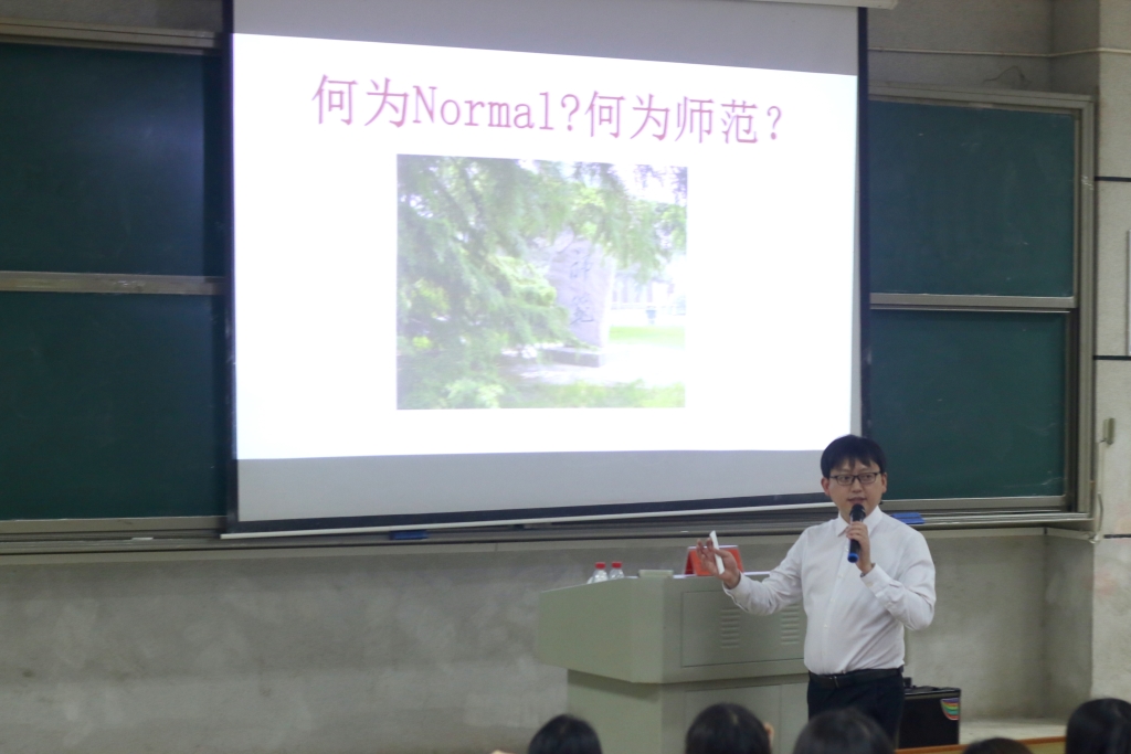 首先,张波男老师跟同学们分享了自己的成长感悟。张老师向同学们提出问题——“何为Normal?何为师范”,引发同学们的激烈讨论和思考,并以“师范就是模范”为切入点铺展开来。张老师分别从“回望”“立德”“立功”“立言”四个方面为同学们分享了自身成长经历、教育初心萌发、教员工涯经验以及自身德育观点。随后,姜小明董事长给同学们带来了精彩一课,以现场展示演绎了一堂好课的四个标准,那就是“趣味引入”“知识悟人”“情感动人”“高度启人”,同时深刻阐述了“以人为本”“问题意识”“立德树人”的教学观点。最后,两位老师分别给同学们送上了宝贵建议和殷切期望。