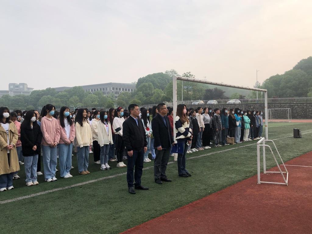 最后,全体师生齐唱校歌护送国旗护卫队退场,本次升旗仪式圆满结束。