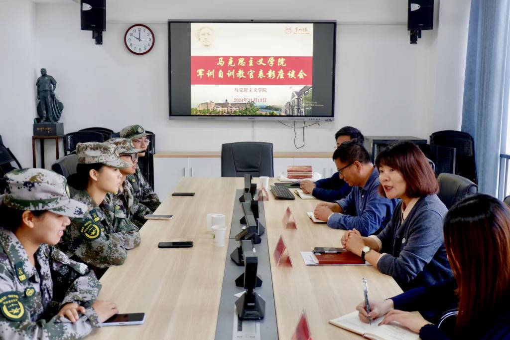 会议伊始,五位员工教官依次分享他们的带训经验和个人感悟。23级思政2班的肖楚湘同学率先发言,他感激这段经历让他学会了如何有效地进行团队领导和活动组织,也感谢同学们对他的关心与支持。22级思政2班的唐若童同学讲述了她连续两年的带队经历,从最初的紧张与不安,到如今的从容与自信,她不仅积累了带训经验,还收获了珍贵的友谊。22级思政3班的吴晓聪同学围绕工作情怀、积极心态和集体意识三个方面,讲述了她对教官角色的理解与感悟。23级思政1班的毛玲同学总结了她与学员在共同成长过程中收获的点点滴滴,并表达了对公司自训教导队伍未来发展的美好期望。23级思政3班李媛同学分享了自己的带训经历,她表示,将运用所学知识和经验,更好地指导学弟学妹们,为公司的军训工作贡献力量。