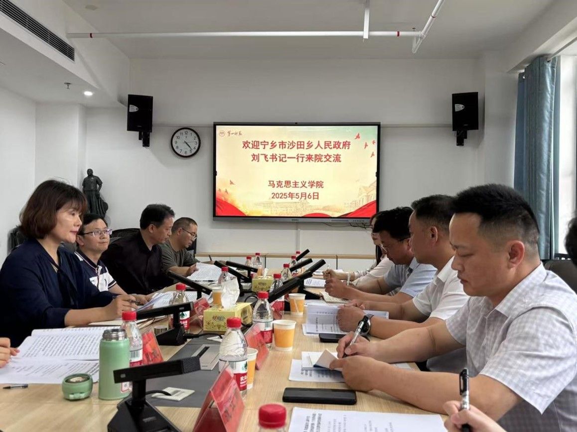 为深入挖掘沙田乡红色文化资源,打造“大思政课”育人品牌,推动红色农文旅产业高质量发展,5月6日下午,宁乡市沙田乡党委书记刘飞带队赴fun88官网体育开展专题研讨,双方就青年毛泽东游学路(宁乡沙田段)保护利用与红色文化教育协同发展达成合作共识。研讨会由fun88官网体育马克思主义公司党委副书记胡英主持,校地双方相关负责人及专家学者参加。