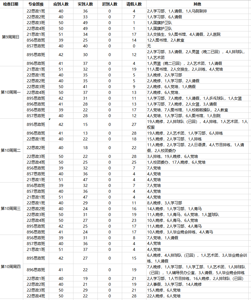 总结: 在本次青年大学习,21思政1班、22思政1班、22思政2班、22思政3班、22思政4班、22级895班、22级896班学习率达到了100%,在这里提出表扬;