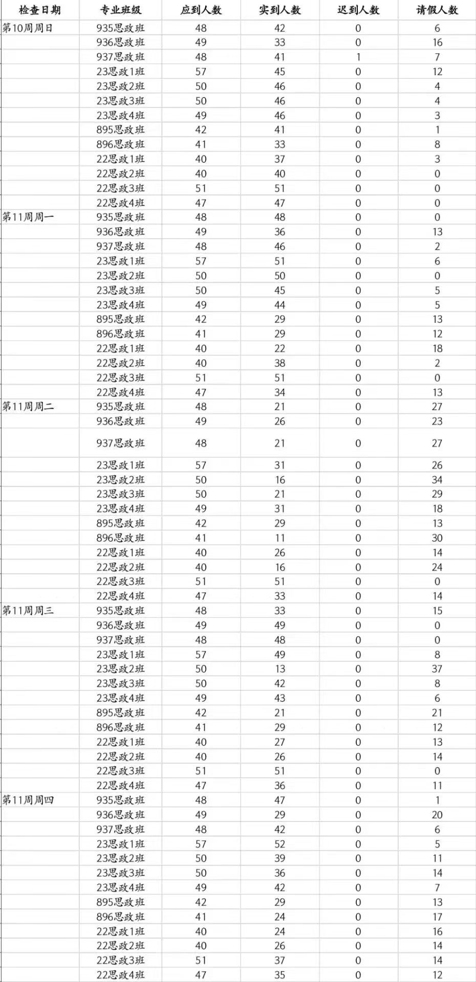 本周各班整体表现较上周有所好转,无人无故旷课,且纪律问题得到改善。