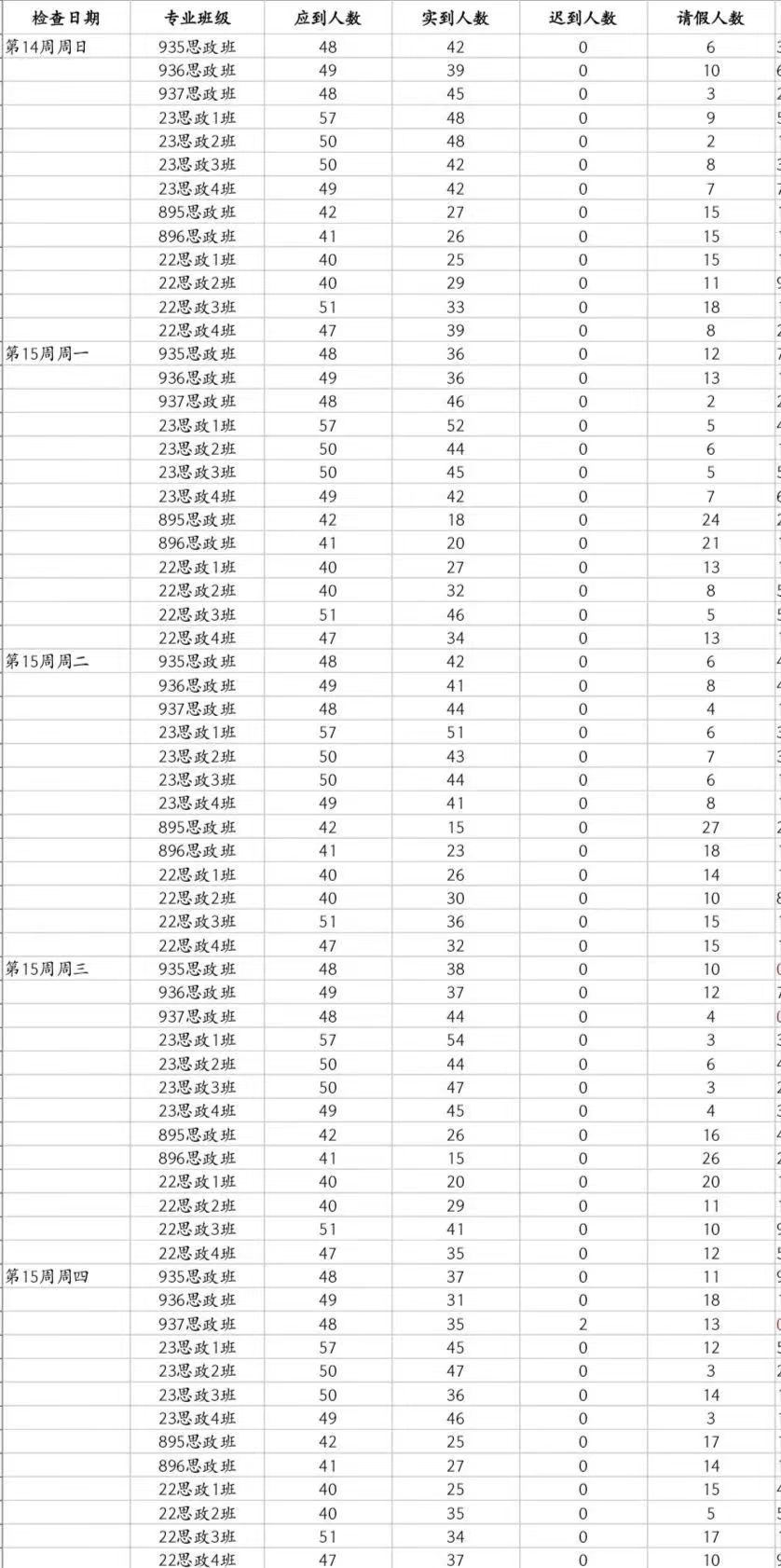 3.周三晚自习935思政班04刘思睿旷课、937思政班02陈怡冰、14罗涵、24万源源、36刘思思旷课。