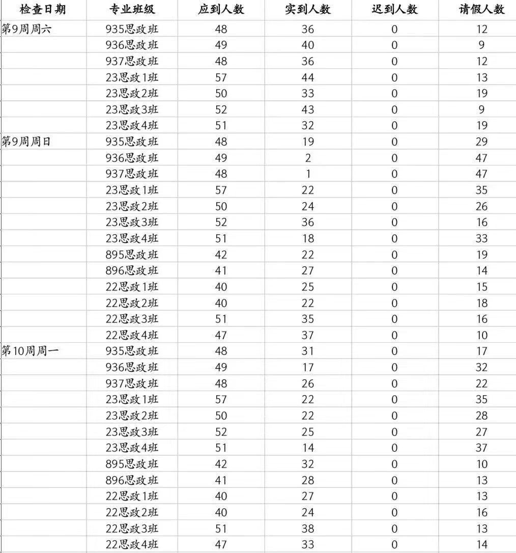 马院第十周晚自习检查情况